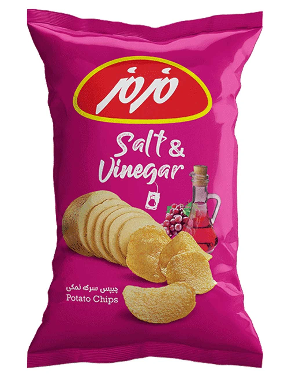 چیپس سرکه ای مزمز وزن 65 گرم | طعم ترش خوشمزه و تردی کلاسیک