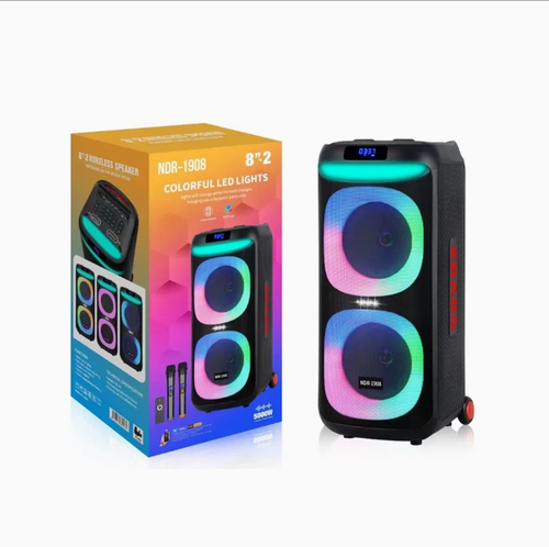 اسپیکر بلوتوثی قابل حمل NDR-1806 – صدای قدرتمند با نورپردازی LED و میکروفونناموجود
