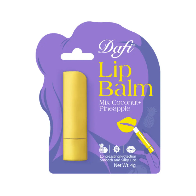 بالم لب دافی، با طعم آناناس نارگیل، با دارا بودن SPF15 از لبها به طور کامل محافظت کرده و از خشک شدن و ترک خوردن آنها جلوگیری میکند. این بالم لب خاصیت مرطوبکنندگی داشته و لبهای خشک را آبرسانی میکند. این محصول از لب دربرابر آسیبها محافظت کرده و در صورت بروز آسیب موجب ترمیم و بهبود آن میشود. بالم لب دافی سرشار از مواد مغذی بوده و استفاده از آن، در طولانی مدت، لبها را صاف و ابریشمی میکند. این محصول برای استفاده آقایان و خانمها و همچنین تمام سنین مناسب است.