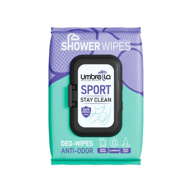 دستمال مرطوب بدن آمبرلا مدل Sport با جنس 100 درصد پنبه ای و از نوع خوشبو کننده بوده و حاوی ترکیباتی نظیر روغن کرچک هیدروژنه، عصاره خیار، پودر برگ آلوئه ورا، ویتامین E و منیزیم هیدروکساید است. این محصول با رایحه ملایم برای تمیز کردن پوست به صورت روزانه در محل کار، مهمانی، مسافرت، پس از فعالیت های ورزشی و بدنی و به طور کلی در مواقعی که امکان دوش گرفتن فراهم نیست، مناسب است. این دستمال مرطوب که با نام شاور وایپ نیز شناخته می شود، آنتی میکروبیال بوده و علاوه بر پاک کردن تعریق پوست، از ایجاد قارچ و بروز بیماری های پوستی جلوگیری کرده و مانع از تیرگی پوست نواحی زیر بغل می شود. همچنین با تنظیم میزان رطوبت آن، از خشکی پوست جلوگیری کرده و موجب طراوت و تازگی پوست می شود. این محصول فاقد آلومینیوم و ترکیبات مضر بوده و از خارش، سوزش و حساسیت پوست جلوگیری می کند.