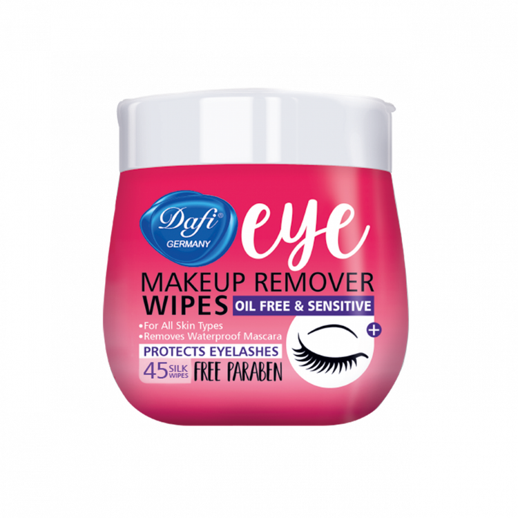 دستمال مرطوب دور چشم دافی، بهراحتی تمامی آرایش حتی ضدآب را از روی چشم پاک کرده و پف زیر چشم را نیز کاهش میدهد. این محصول، بدون ایجاد حساسیت، آرایش را پاک و پوست را تغذیه میکند.