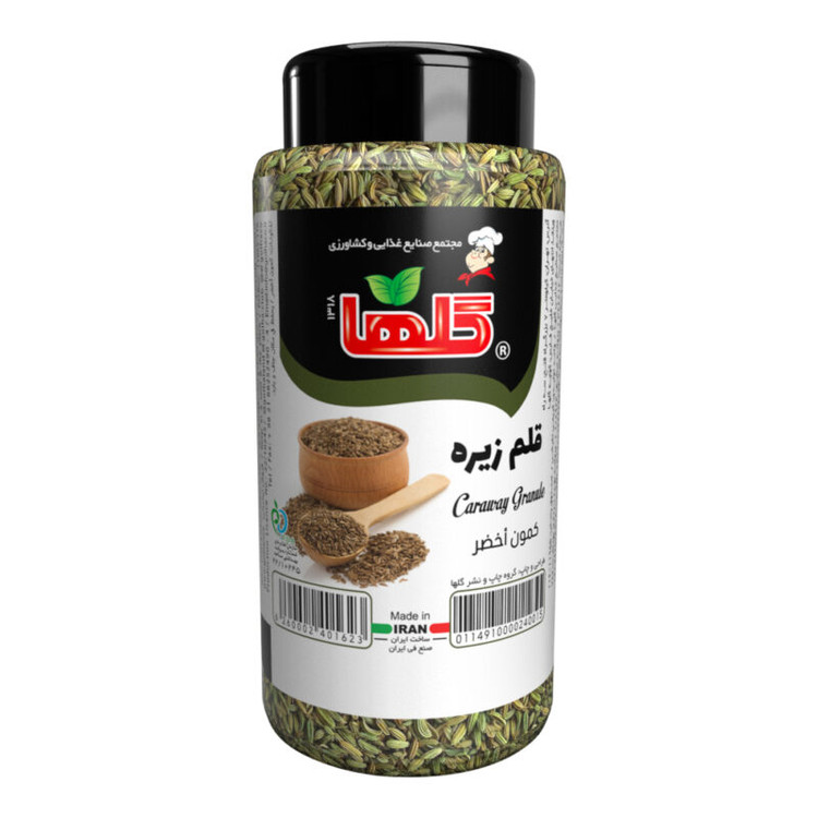 قلم زیره سبز«گلها» در بستهبندی قوطی P.E.T عرضه شده و حاوی ۷۰ گرم قلم زیره سبز با کیفیت و کاملا یکدست است.