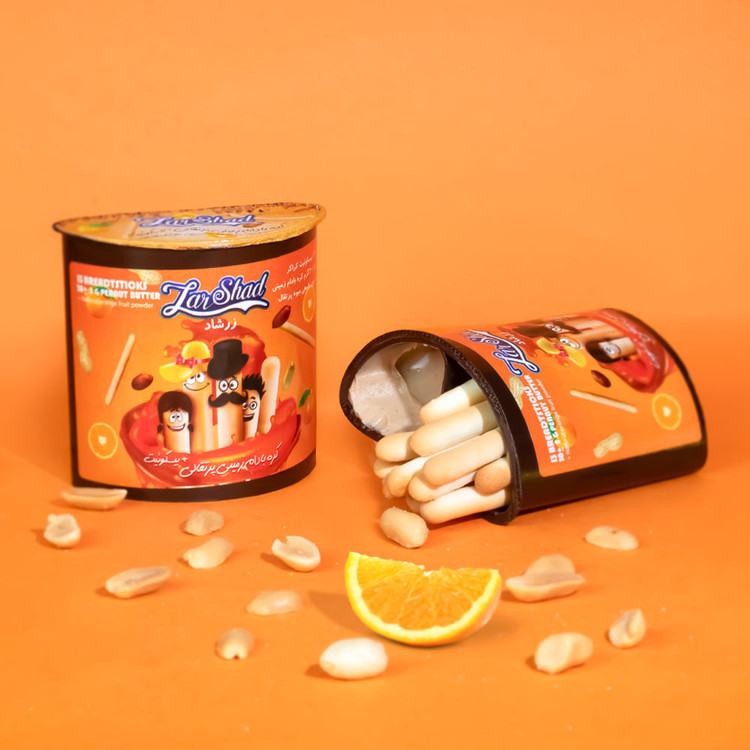 ترکیبات: بادام زمینی - شکر - امولسیفایر - نمک - پودر میوه پرتقال - بیسکوئیت