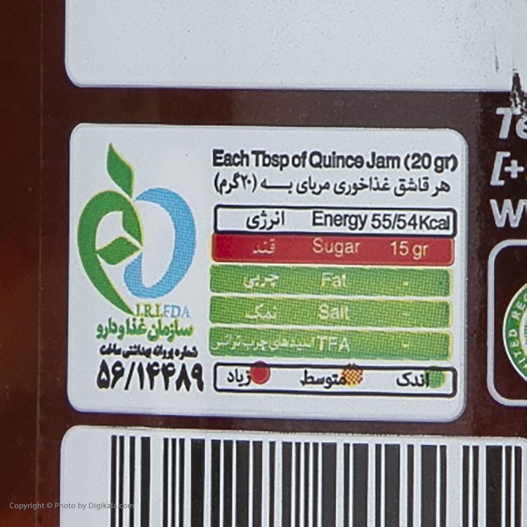 سایر توضیحات: -میزان ارزش غذایی در 20 گرم ، براساس اطلاعات سازمان غذا و دارو :