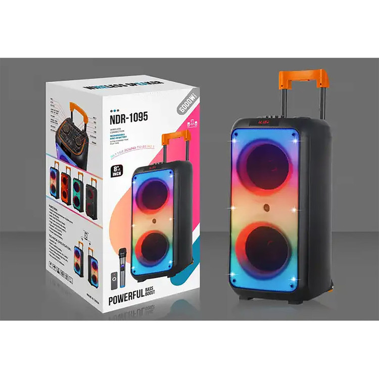 اسپیکر ndr 1095 از سری محصولات باکیفیت تولید شده توسط کمپانی ndr است که به عنوان یک اسپیکر قابل حمل روانه بازار شده است. این اسپیکر دارای قابلیت اتصال بیسیم است که با استفاده از بلوتوث امکانپذیر میباشد. شما میتوانید بلوتوث اسپیکر و منبع صوتی خود را روشن کنید و اتصالی قدرتمند برقرار کنید و با این اتصال قدرتمند به پخش موسیقیهای مورد علاقه خود بپردازید. این اسپیکر قابل شارژ با باتری قدرتمند خود امکان پخش موسیقی به مدت 6 ساعت را برای شما فراهم میکند. همچنین این اسپیکر جذاب همراه با رقص نور و قدرت پرتاب صدای و بیس عالی ، مناسب جشن های شما می باشد. نمایشگر باتری، رقص نور جذاب و رینگ لایتی، رقص نور ریتمیک از قابلیت های دیگر این محصول فوق العاده می باشد.این اسپیکر دارای قابلیت tws میباشد که میتوان دو اسپیکر را به هم متصل کرد.