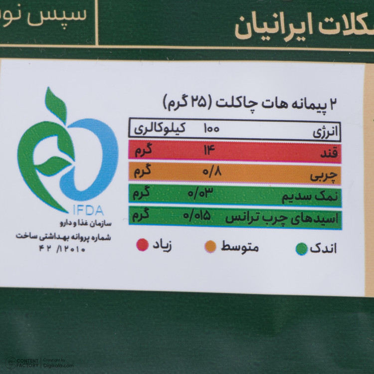پودر هات چاکلت با حجم بسته 400 گرم و تعداد 16 بسته 25 گرمی، یک انتخاب عالی برای لذتبردن از چاکلت گرم و دلچسب است. این محصول با پروانه بهداشت شماره 42/12010 تولید شده است و افتخار دارد که محصولی ایرانی با کیفیت برای لذت بردن از طعمی دلپذیر ارائه دهد. این پودر هات چاکلت با ترکیبی دقیق از بهترین مواد اولیه تولید شده است، بهطوری که هر بسته از آن شما را به دنیایی از طعم و عطر خوشبو و گرمایی میبرد. با تنوع بستهبندیهای 25 گرمی، شما میتوانید همیشه و هر جا که هستید، از لذت چاکلت گرم لذت ببرید. با توجه به استانداردهای بهداشتی بالا و مواد اولیه مرغوب، این پودر هات چاکلت به عنوان یکی از بهترین گزینهها برای لذت بردن از چاکلت گرم در فصول سرد سال توصیه میشود. همچنین، این محصول که تولید شده در ایران است، افتخار ملی را نیز در خود جای داده است.