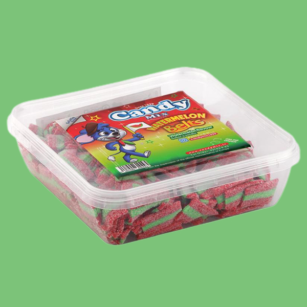 پاستیل نواری هندوانه کندی میکس تهیه شده از مرغوب ترین ترکیبات غیرتراریخته شامل،شکر،شربت گلوکز،طعم دهنده ها،رنگ های خوراکی و ژلاتین میباشد.پاستیل کندی میکس وزن هرعدد آن 1کیلوگرم،که بصورت کارتن 6عددی در بازار عرضه می گردد.