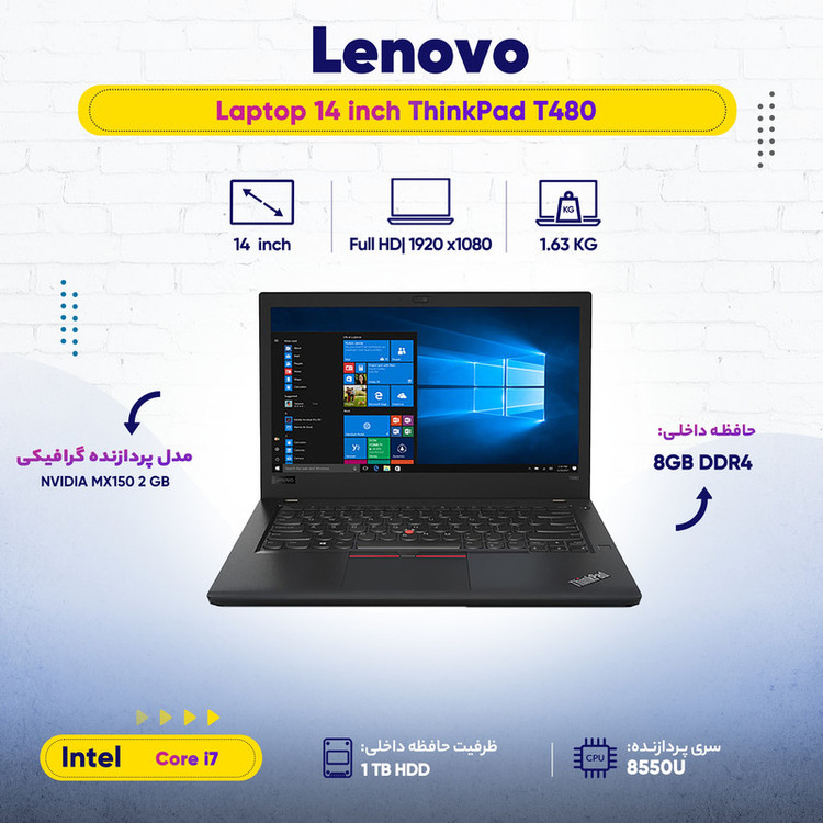 مشخصات فنی لپتاپ Lenovo ThinkPad T480 استوک: