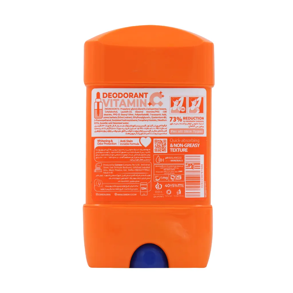 ویتامین C به عنوان یک آنتیاکسیدان شناختهشده، نقش مهمی در روشنتر شدن و شفافیت پوست دارد. وجود این ترکیب در استیک صابونی کامان باعث میشود که تیرگی پوست زیر بغل کاهش یابد و ناحیهای روشن و سالم داشته باشید.