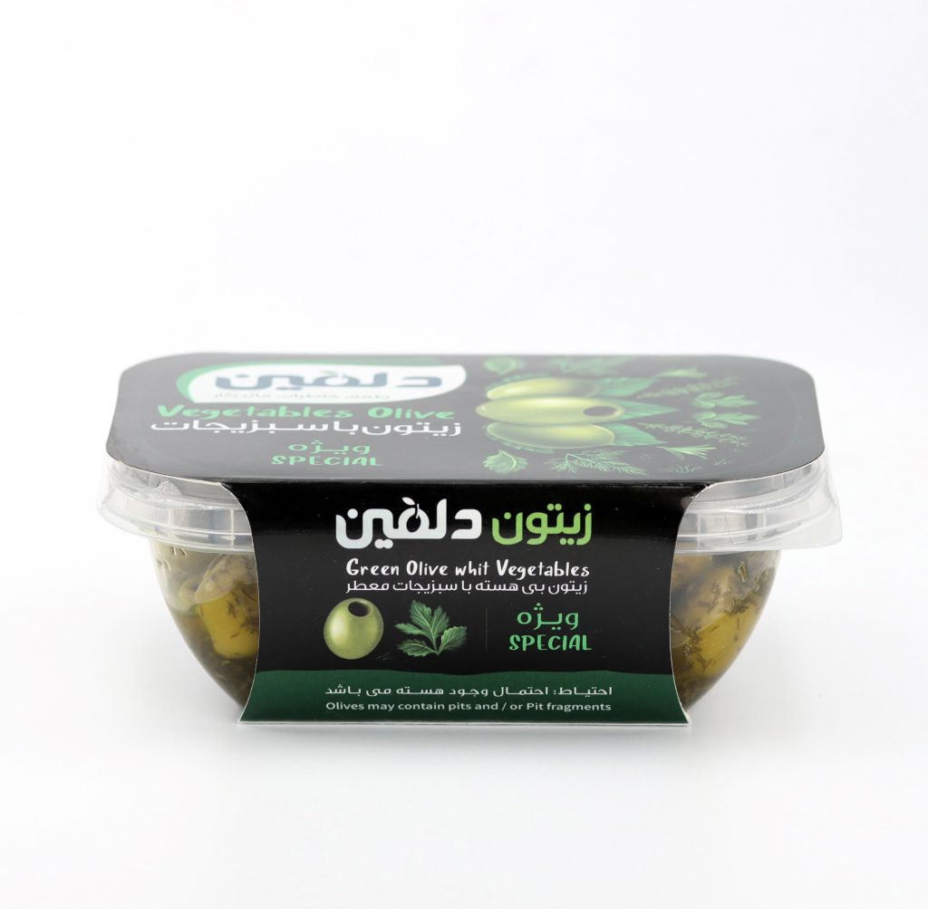 زیتون با سبزیجات ممتاز قایقی بدون هسته 220 گرم