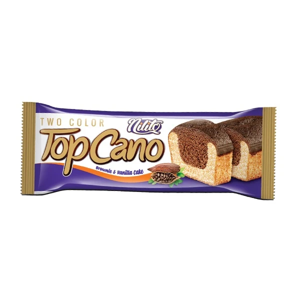 کیک روغنی پذیرایی تاپ کانو دو رنگ وانیل کاکائویی بافتی نرم، مرطوب و طعمی متعادل دارد که از ترکیب شیرینی و عطر طبیعی وانیل با تلخی ملایم کاکائو ایجاد شده است. این محصول خوشطعم برای مصرف روزانه، پذیرایی مهمان یا میانوعده در هر زمان از روز انتخابی ایدهآل است.