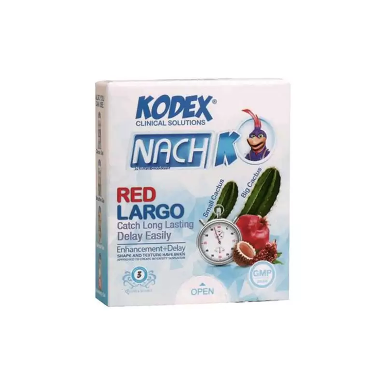 کاندوم کدکس لارگو قرمز از سری محصولات محبوب برند Kodex است که با هدف افزایش عملکرد، بهبود گردش خون و ایجاد تاخیر طبیعی طراحی شده است.