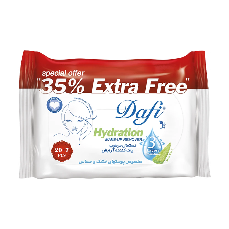 دستمال مرطوب پاک کننده آرایش اکسترا دافی 27 برگ – حاوی عصاره آلوئه ورا و ویتامین E، مناسب پوست های حساس