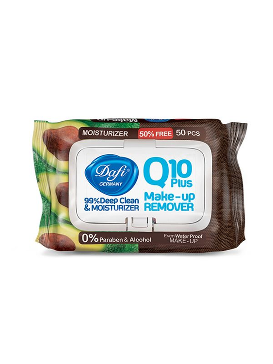 دستمال مرطوب پاک کننده آرایش Q10 میوه ای درب دار 50 عددی دافی | جوانساز و آنتی اکسیدان پوست
