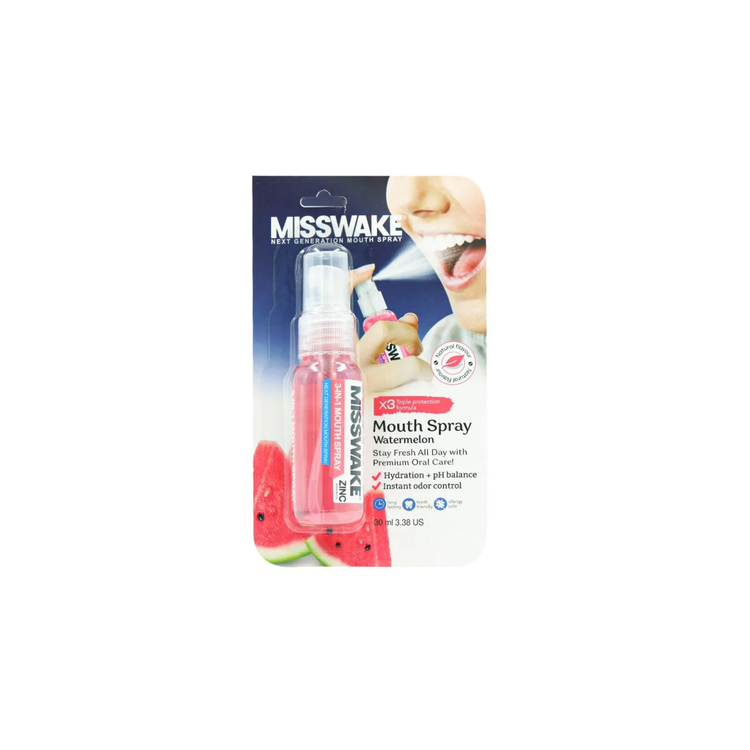اسپری خوشبو کننده دهان MissWake Watermelon با طعم دلپذیر هندوانه، محصولی ایدهآل برای افرادی است که به دنبال طراوت و خوشبویی فوری دهان خود در طول روز هستند.