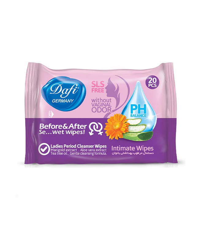 دستمال مرطوب بهداشتی بانوان دافی، ترکیبی هوشمندانه از فناوری بهداشتی روز دنیا و عصارههای گیاهی آرامبخش است. این محصول با هدف حفظ سلامت، طراوت و آرامش پوست بانوان طراحی شده و بهعنوان همراهی مطمئن در طول روز شناخته میشود.