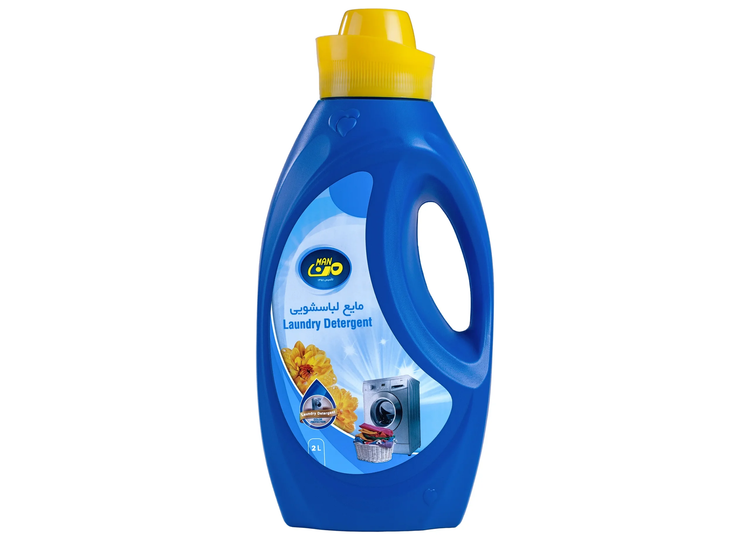 مایع لباسشویی 2 لیتری آبی برند من – پاک کنندگی عمیق و حفظ رنگ لباس
