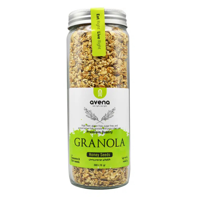 گرانولا جودوسر و عسل دانه چیا و کنجد و تخم آفتابگردان آونا وزن 380 گرم