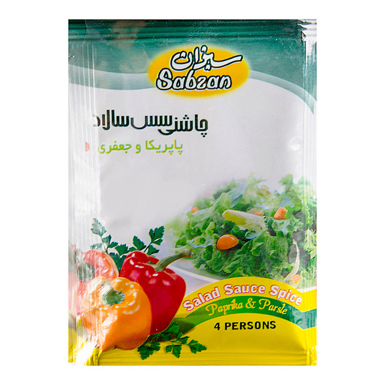 مواد تشکیل دهنده: پودر پاپریکا ، پودر سیر ، پودر سرکه ، پودر زردچوبه ، پودر لیمو عمانی ، پودر فلفل قرمز ، نشاسته ذرت ، کاکوتی ، نعنا خشک ، جعفری خشک ، اسید سیتریک ، نمک تصفیه شده.