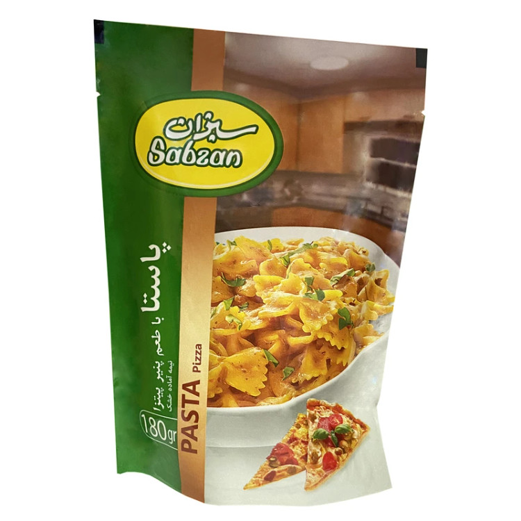 پاستا با طعم پنیر پیتزا سبزان یک محصول منحصر به فرد و خاص است که طعم متمایزی دارد.تصور کنید بعد از یک روز طاقت فرسای کاری به خانه باز میگردید و نیازی نیست نگران وعده غذایی خود باشید و تنها با افزودن مقداری شیر و آب به این محصول یک غذای خوشمزه دارید که در مدت زمان کمی آماده میگردد.همچنین با افزودن مقداری پنیر پیتزا و خامه به این محصول میتوانید طعم بینظیری را تجربه کنید.