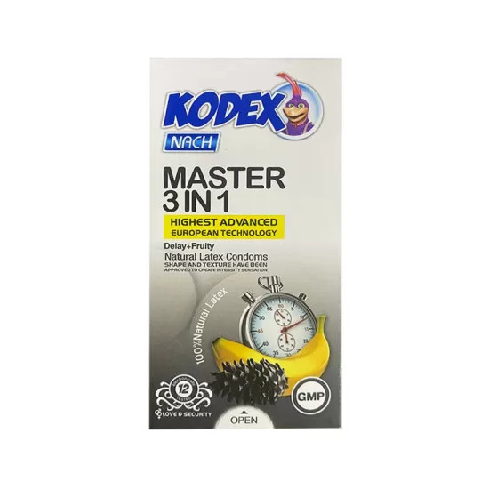 کاندوم کدکس 12 عددی 3 در 1 مستر ساده – تاخیری، روان کننده و تحریک کننده برای رابطه ای طولانی و هیجان انگیز - Kodex 3 in 1 Master Condom 12 pcs - خرید عمده