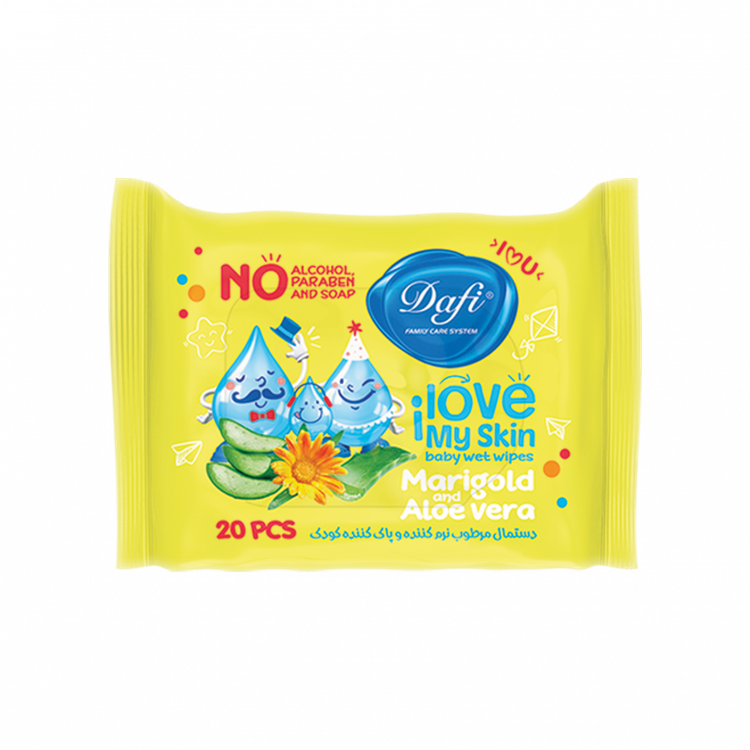 این دستمال مرطوب، دارای عصاره ماریگلد و آلوئهورا برای حفظ لطافت و شادابی پوست بوده و پوست کودک را نرم و مرطوب میکند.