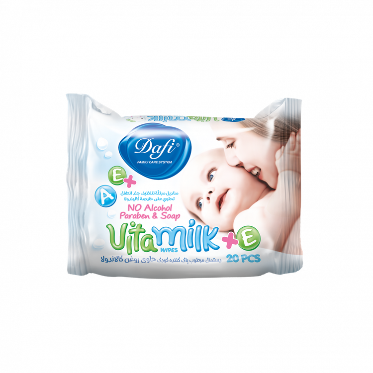 دستمال مرطوب پاککننده کودک ویتامیلک دافی علاوه بر خاصیت پاککنندگی، مرطوبکننده پوست هم میباشد. این دستمال خواص شیر و ویتامینهای A و E داشته و برای حفظ لطافت و شادابی پوست مناسب است.